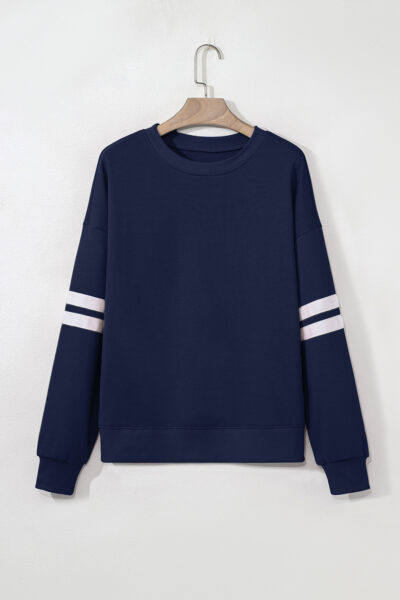 Navy Blue Varsity Striped Detail Drop Shoulder Oversized Sweatshirt