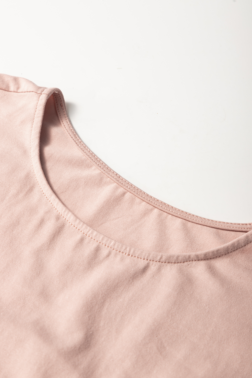 Oatmeal Frilled Trim Crew Neck Loose Fit Mini Dress