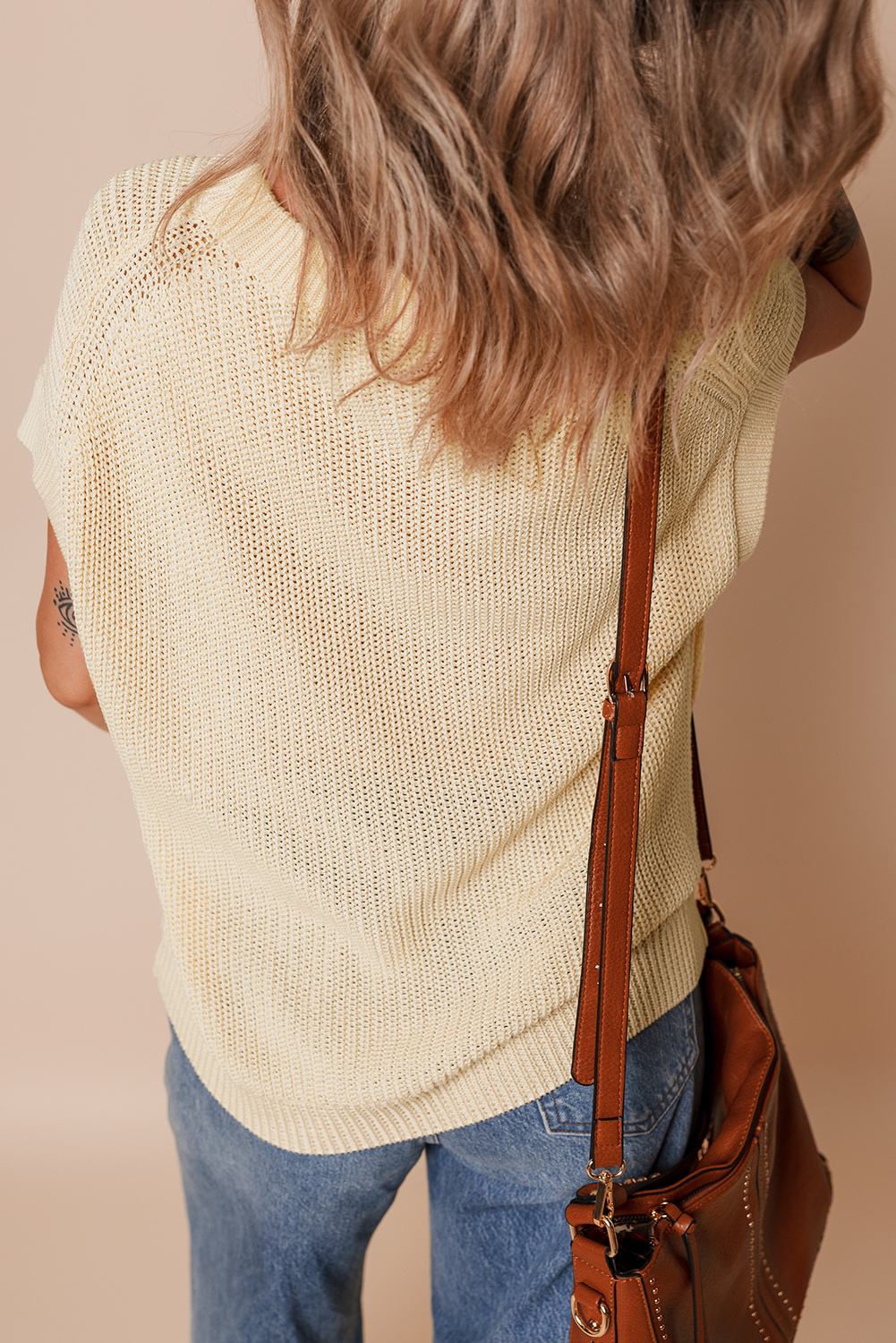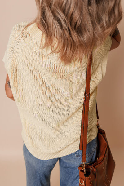 Oatmeal Solid Color Batwing Short Sleeve Round Neck Knit T Shirt