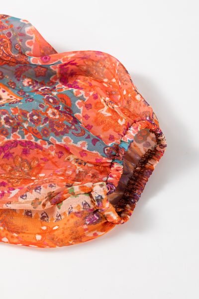 Orange Boho Paisley Print Long Sleeve Pleated Belted Mini Dress