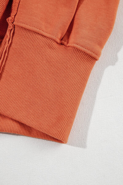 Orange Buttoned Collared Raw Detail High Low Baggy Sweatshirt with Slits