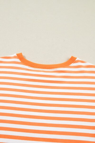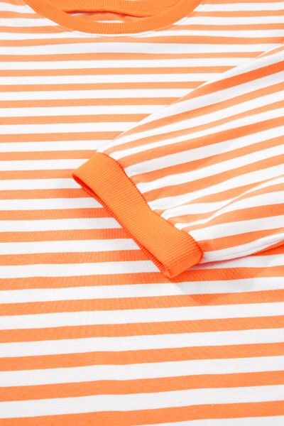 Orange Stripe 3/4 Sleeve Exposed Seam Patchwork Pullover Top