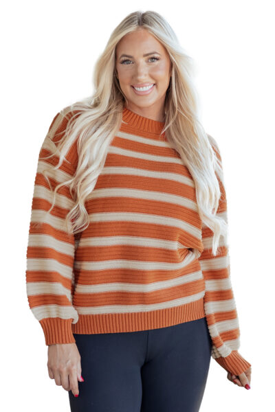 Orange Stripe Ribbed Trim Drop Shoulder Sweater