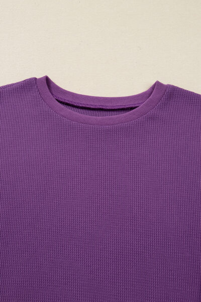 Orchid Mist Solid Color Raw Seam Patchwork Ribbed Drop Shoulder Sweatshirt
