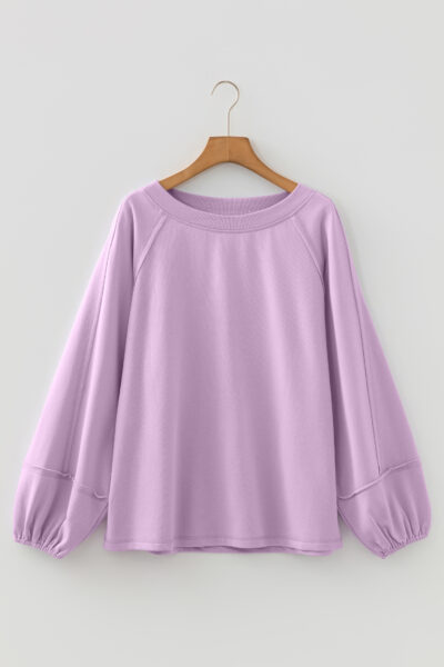 Orchid Petal Solid Color Raw Seam Patchwork Baggy Sweatshirt