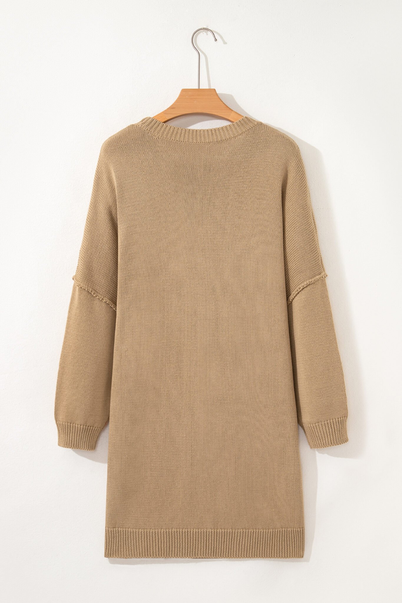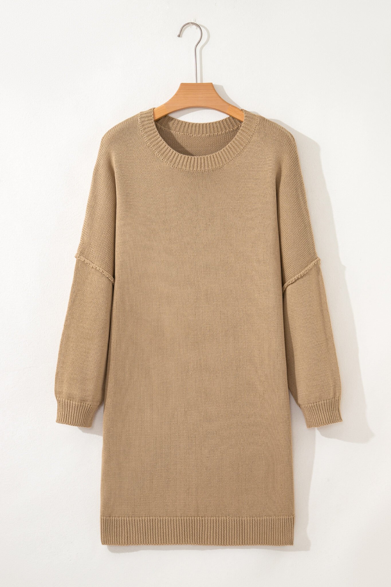 Pale Khaki Exposed Seam Drop Shoulder Oversize Sweater Mini Dress