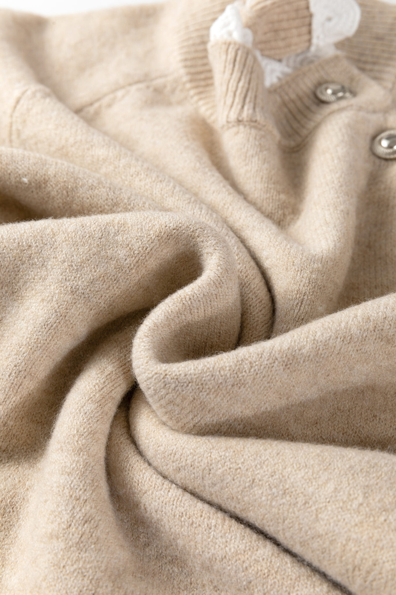 Parchment Button Lace Detail Raglan Sleeve Shift Mini Sweater Dress