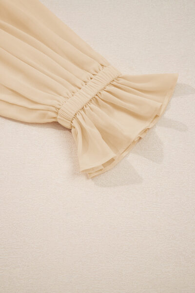 Parchment Pleated Ruffle Long Sleeve Chiffon Blouse