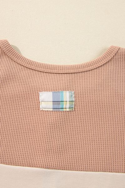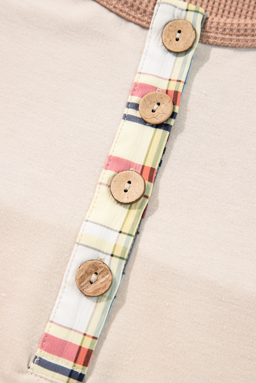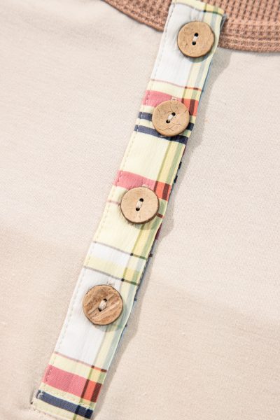 Parchment Plus Size Plaid Patchwork Layered Henley Top