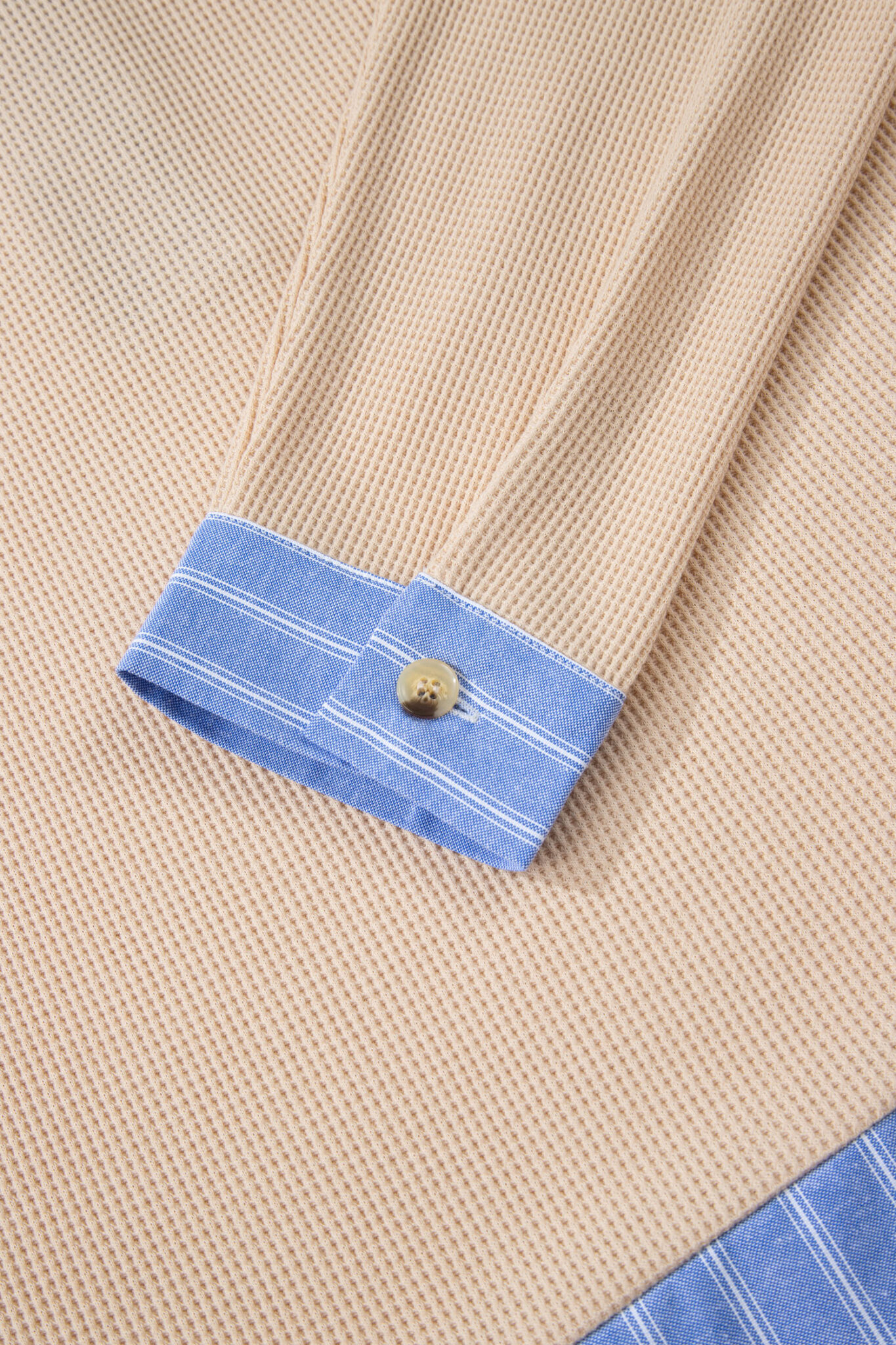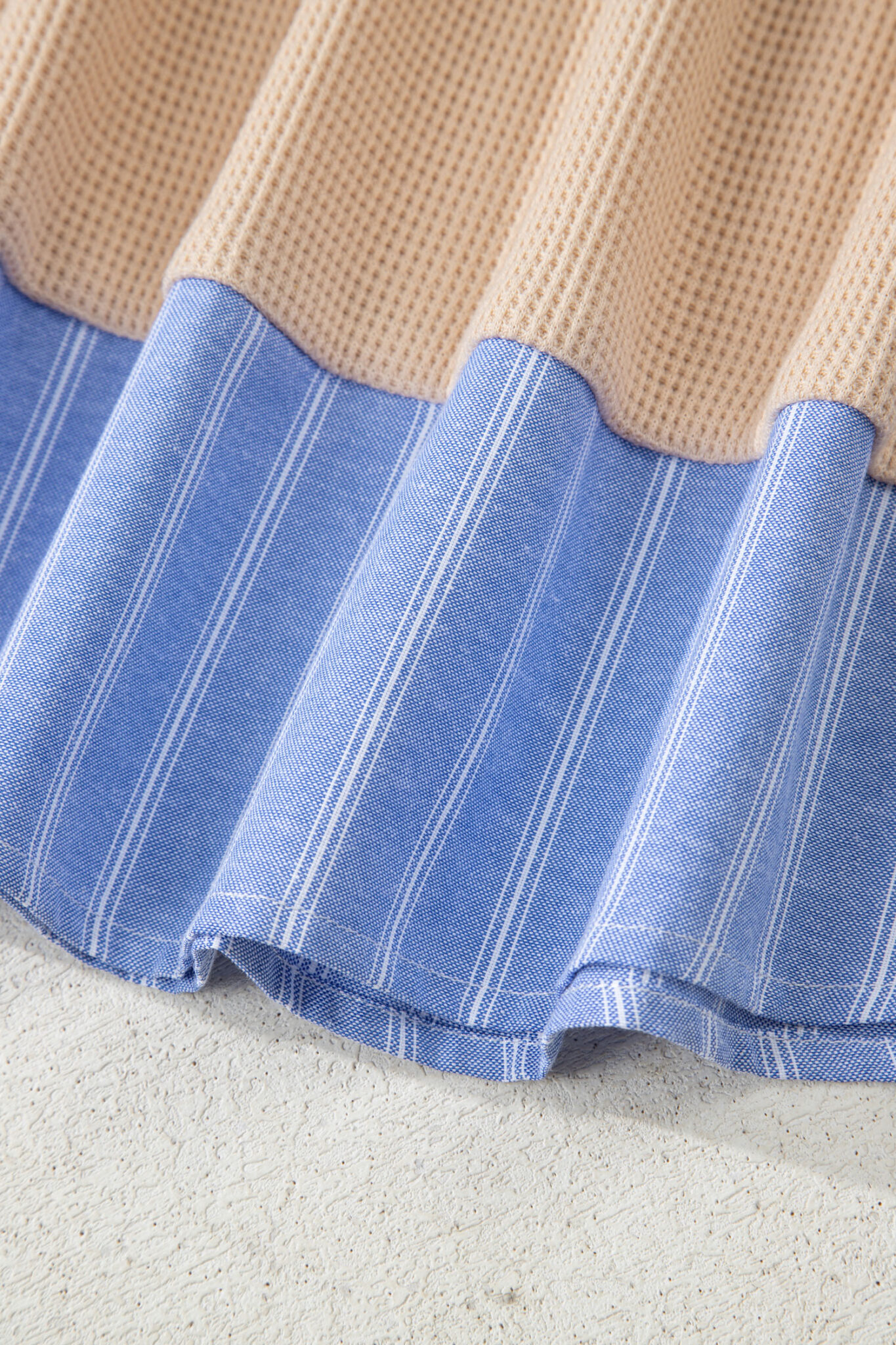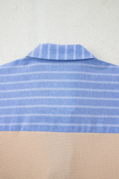 Parchment Plus Size Striped Contrast Trim Waffle Knit Collared Top