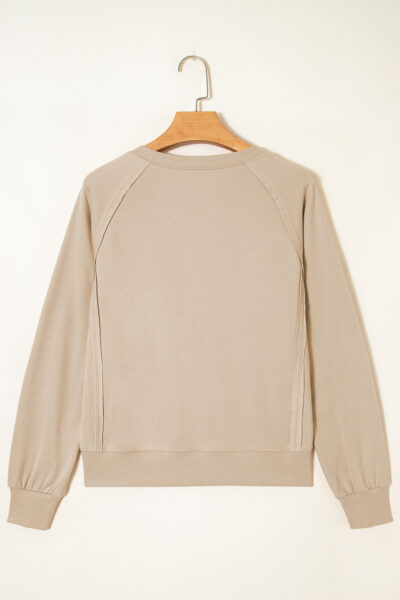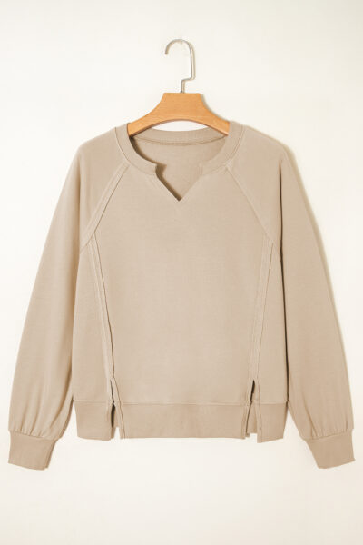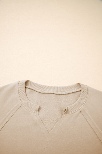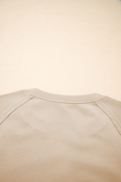 Parchment Raw Edge Exposed Seam Raglan Sleeve Side Slit Sweatshirt