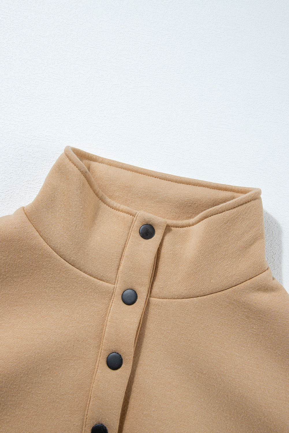 Parchment Solid Half Button Sweatshirt and High Waist Sweatpants Set