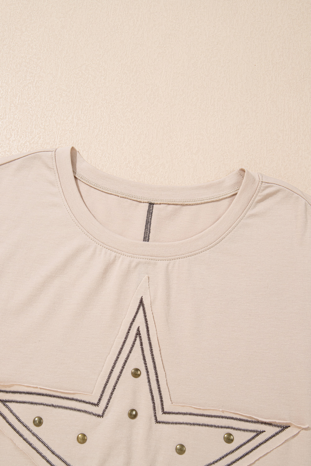 Parchment Studded Star Lace Patchwork Hem Plus Size Tank Top
