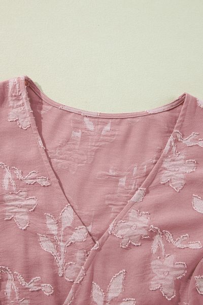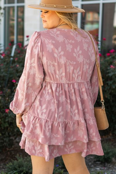 Peach Blossom Floral Surplice V Neck Tiered Ruffled Plus Size Dress