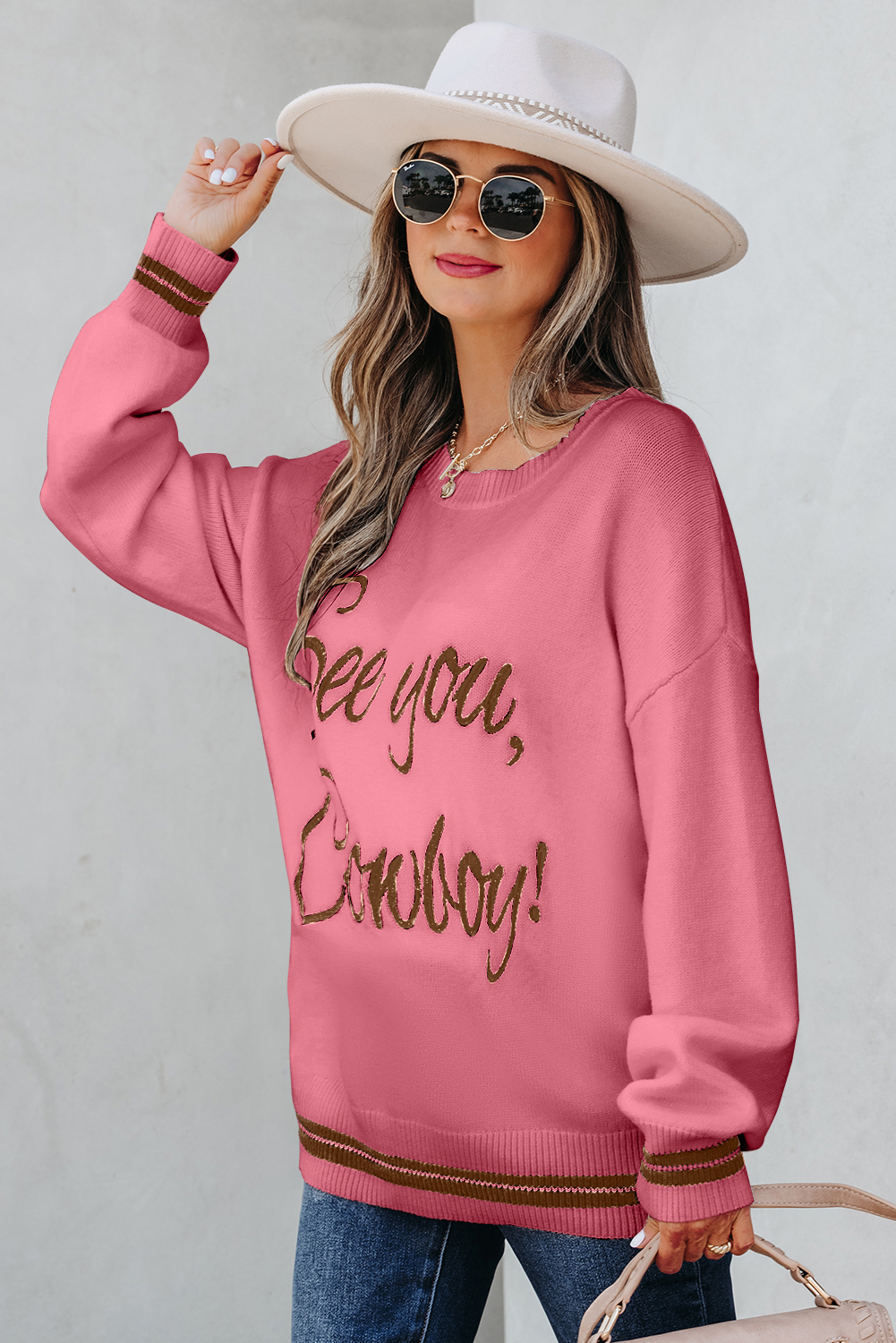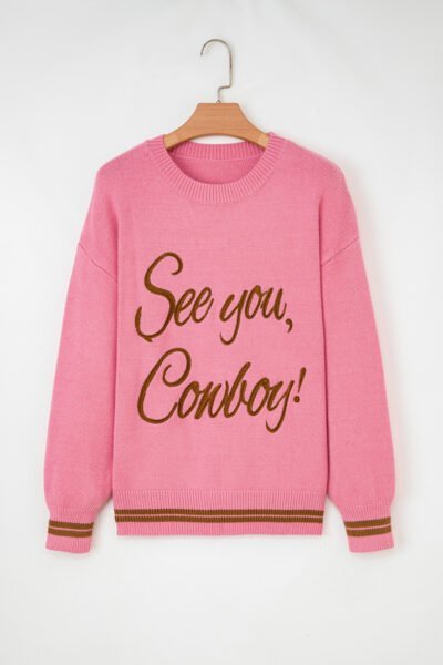 Peach Blossom See You Cowboy Embroidered Western Graphic Sweater