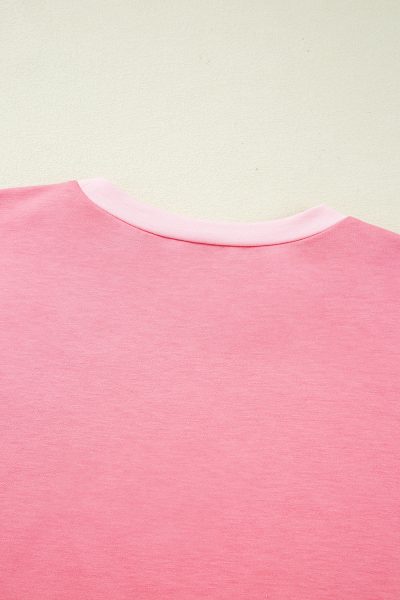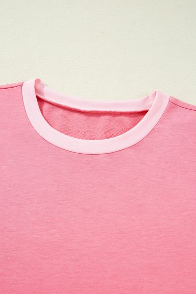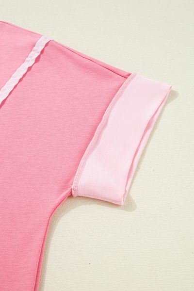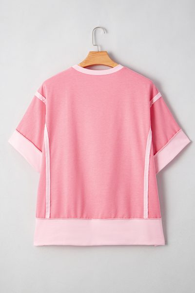 Peach Blossom Two Tones Patchwork Half Sleeve Plus Size T Shirt