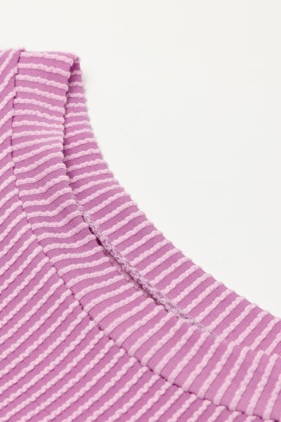 Phalaenopsis Ribbed Textured Knit Loose Fit Tee and Shorts Set