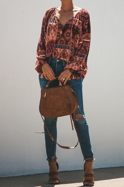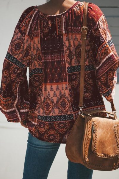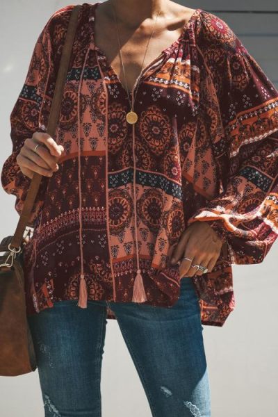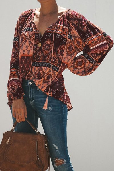 Pilcro Women’s Casual Boho Floral Print Blouses Red