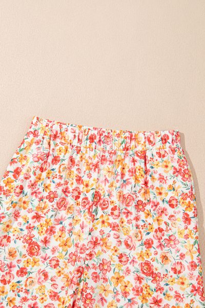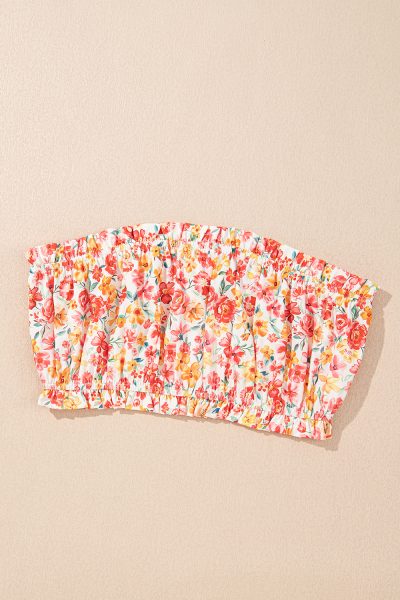 Pink Boho Floral Bandeau Top and High Waist Wide Leg Pants Set