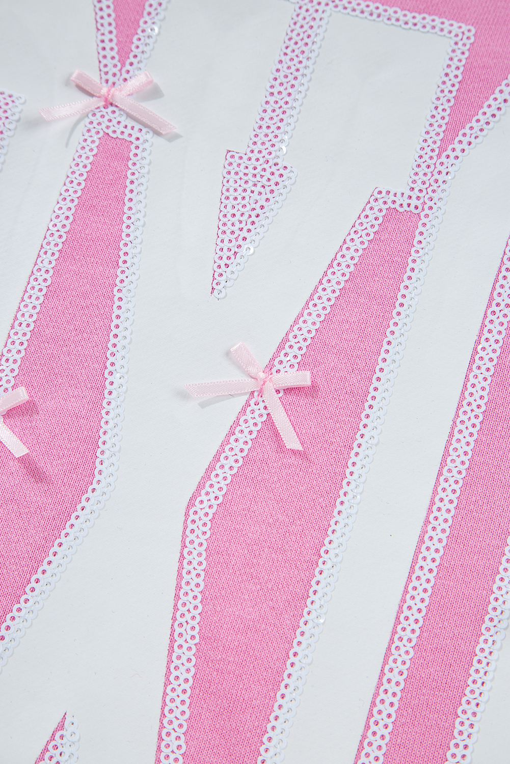 Pink Bow Sequin XOXO Letter Graphic Exposed Seam Baggy Sweatshirt