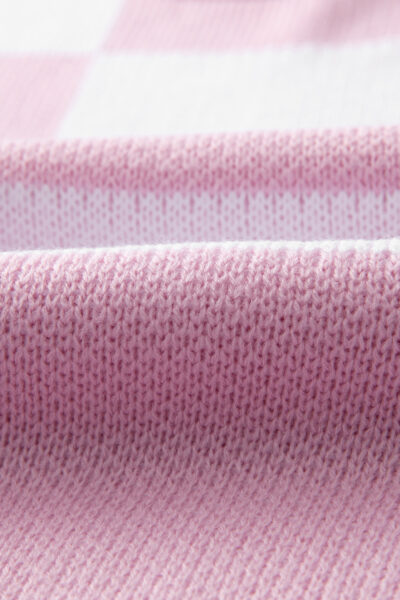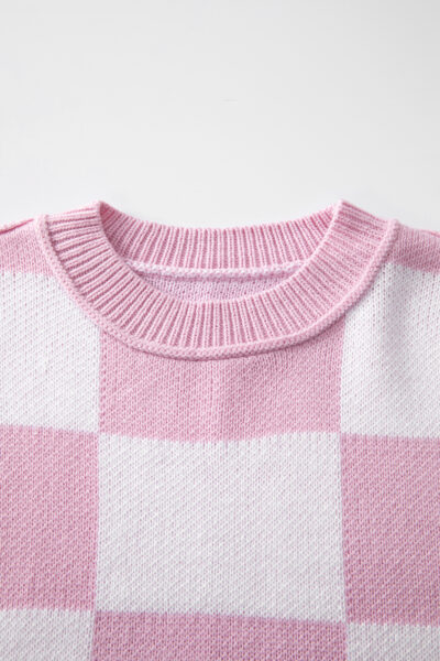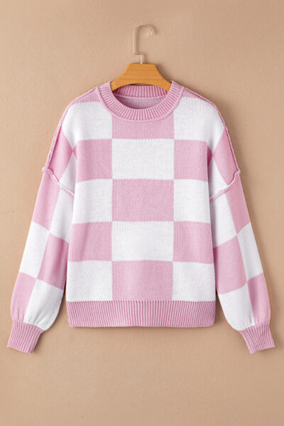 Pink Checkered Bishop Sleeve Sweater