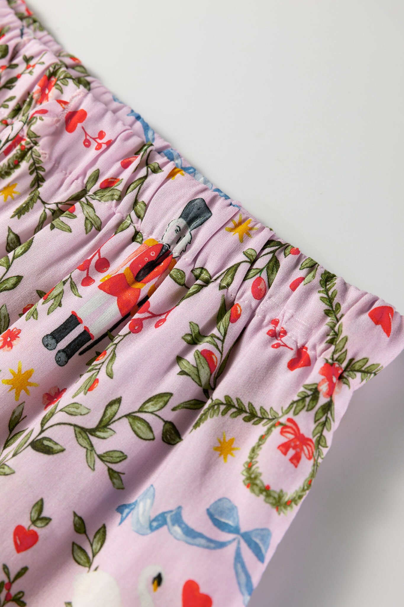 Pink Christmas Holiday Print Nutcracker Long Sleeve Shorts 2pcs Pajama Set