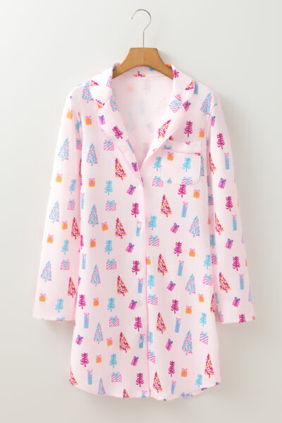 Pink Christmas Twinkle Tree Print Shirt Sleep Dress