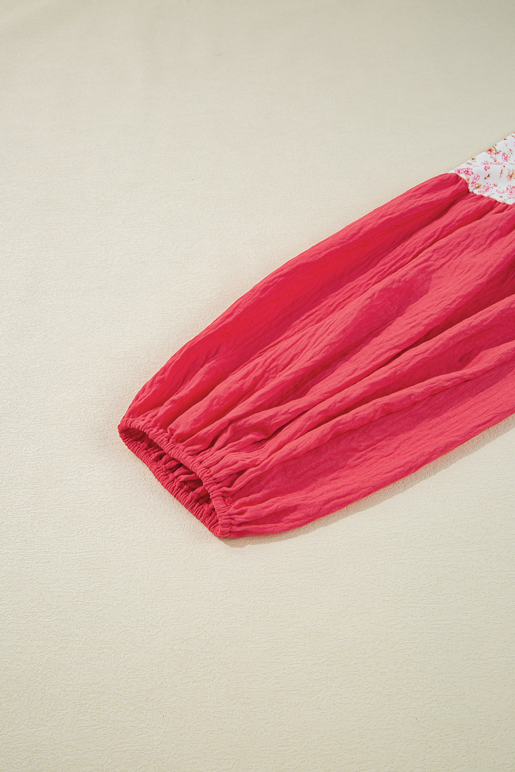 Pink Contrast Floral Patchwork Long Sleeve Plus Size Blouse