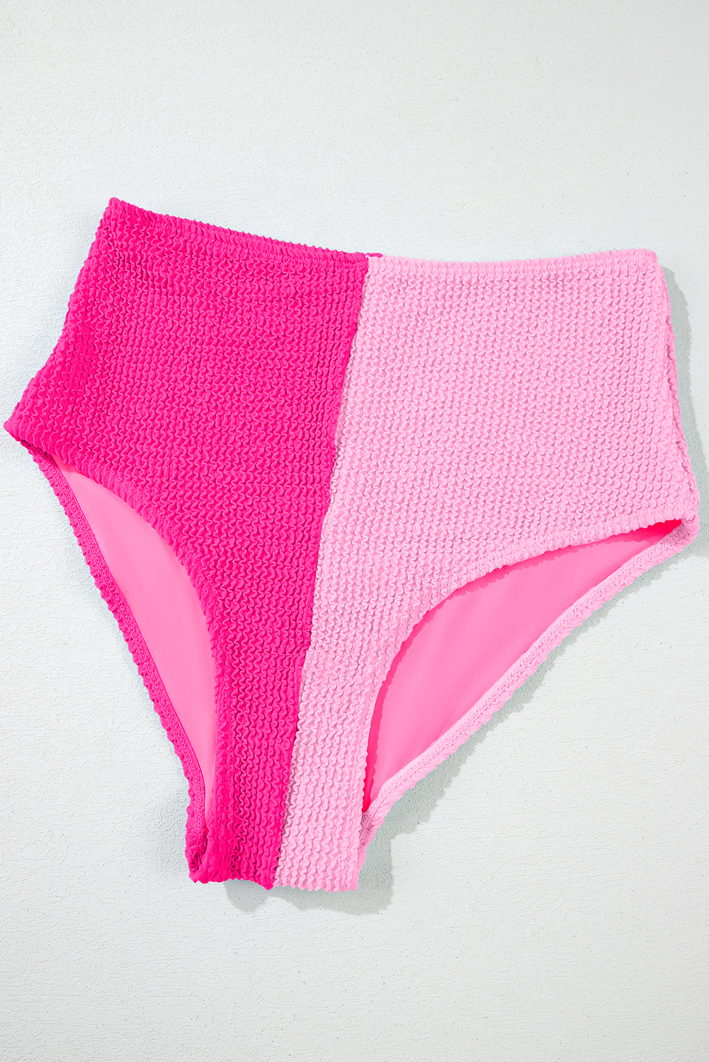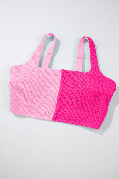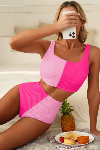 Pink Corded Colorblock Square Neck Bikini Swimsuit