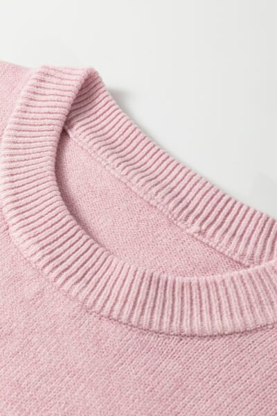 Casual pullover knit, round neckline, and dropped shoulders.