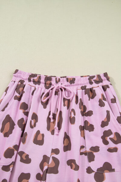 Pink Drawstring Leopard Print Patch Pocket Loose Pants