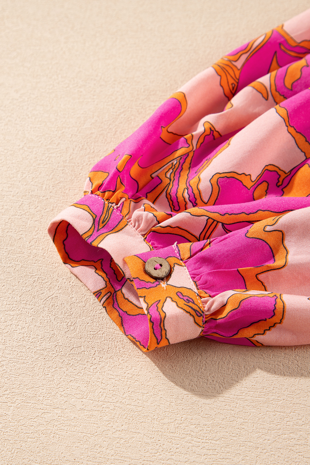 Pink Floral Print Batwing Sleeve Buttoned Loose Fit Shirt