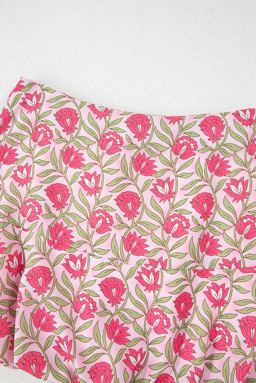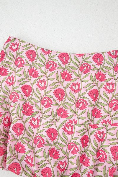 Pink Floral Print Puffy Cropped Tank and Mini Skirt Set