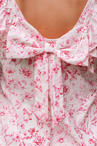 Pink Floral Ruffled Short Sleeve Bow Back Square Neck Blouse