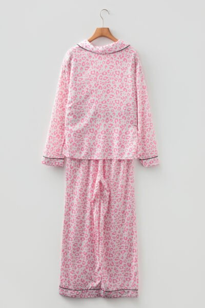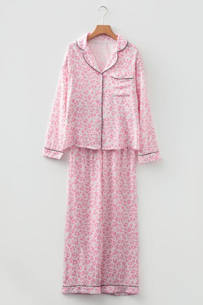 Pink Leopard Print 2cps Long Pajama Set