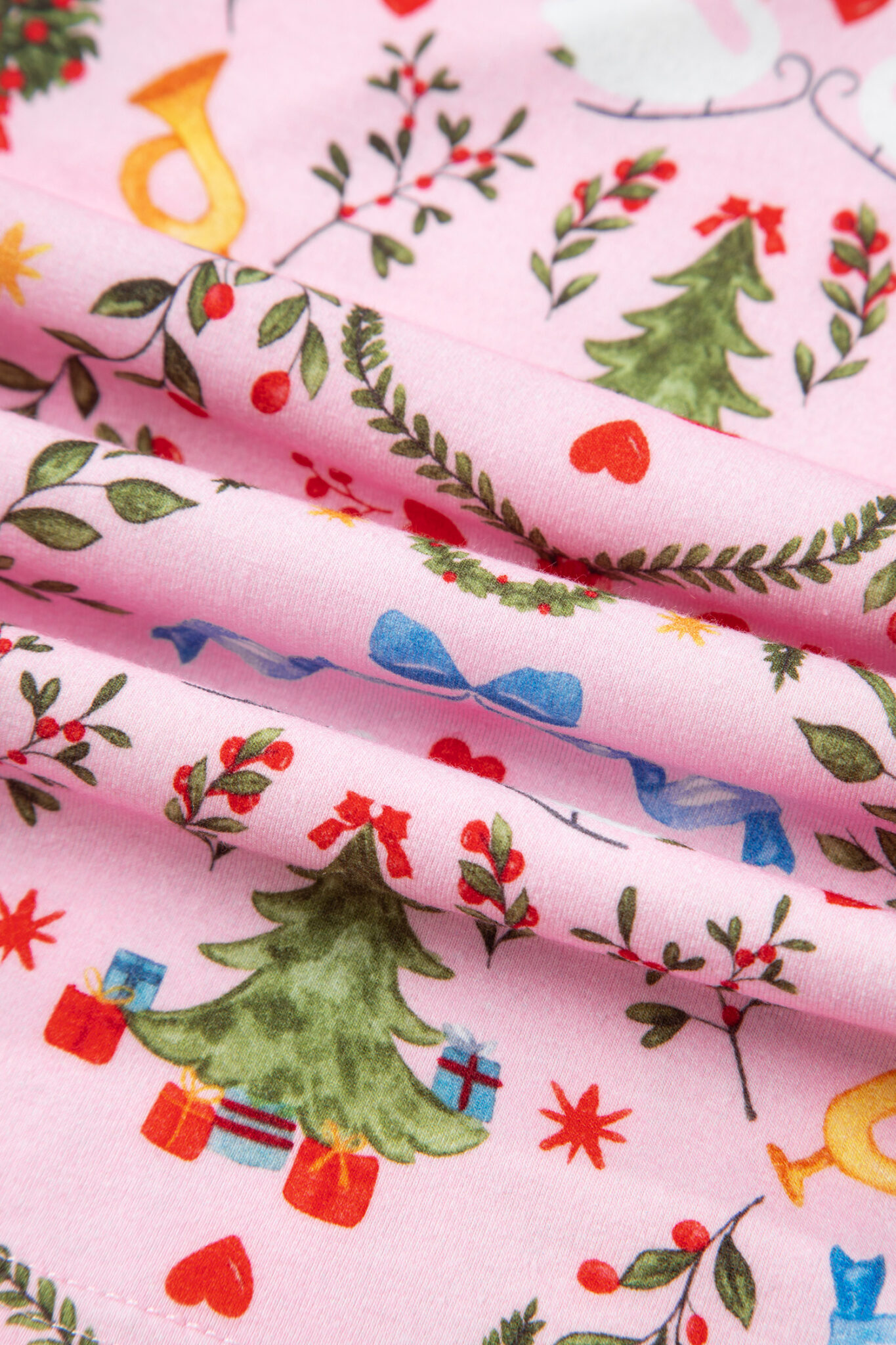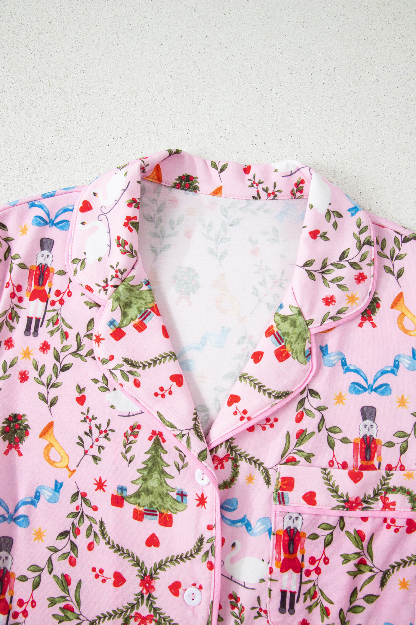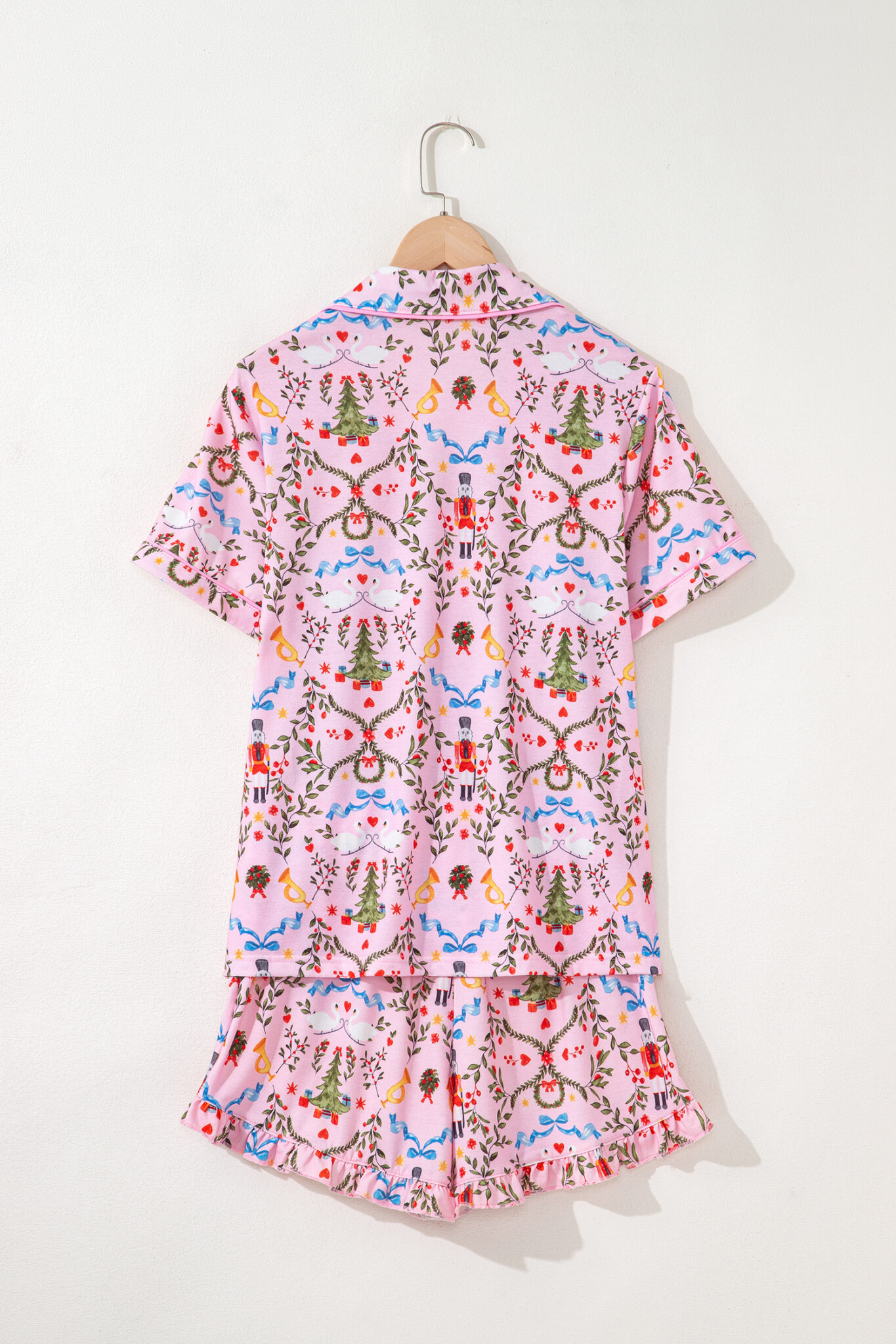 Pink Nutcracker Doll Christmas Print Ribbon Tie Waist Short 2pcs Pajama Set