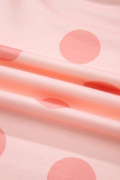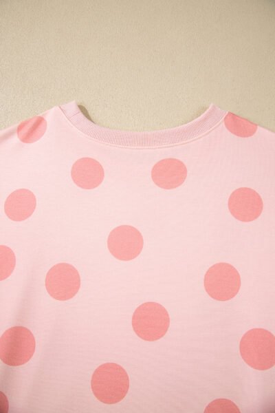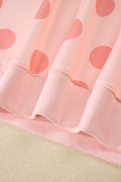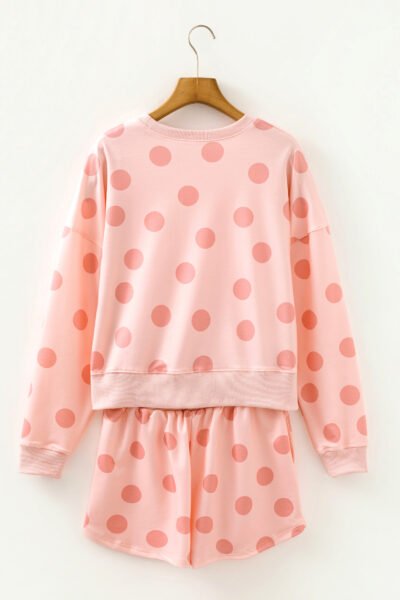 Pink Polka Dot Print Drop Shoulder Pullover Drawstring Shorts Set