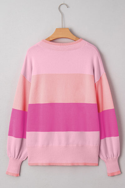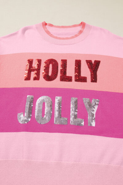 Pink Sequined HOLLY JOLLY Color Block Crew Neck Sweater