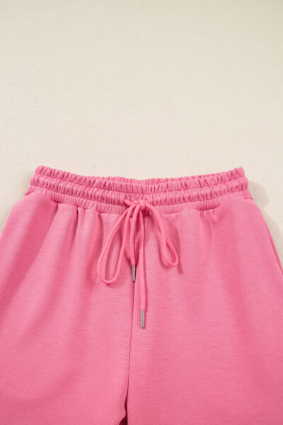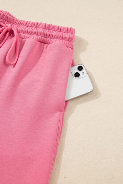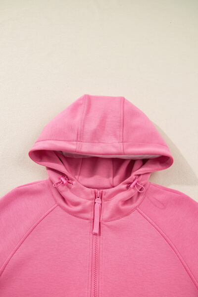 Pink Solid Color Zip Up Hoodie Drawstring Loose Pants Set