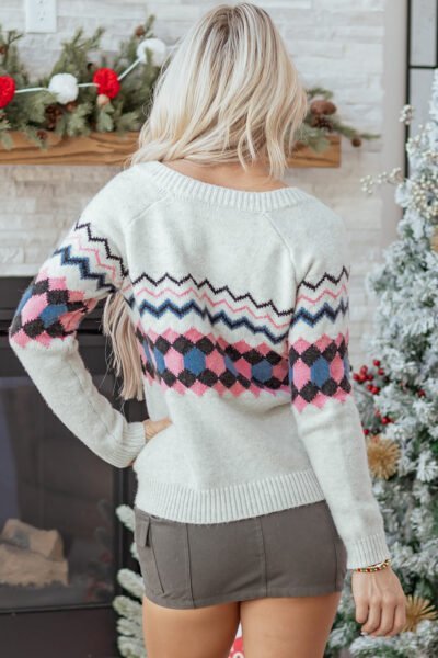 Pink Stripe Geometric Button Up Sweater Cardigan