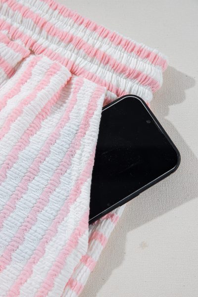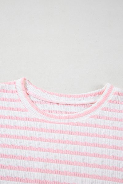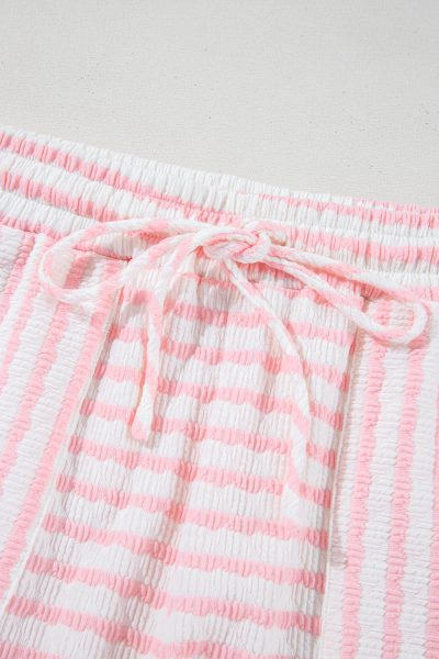 Pink Stripe Knitted Short Sleeve Top and Drawstring Shorts Set