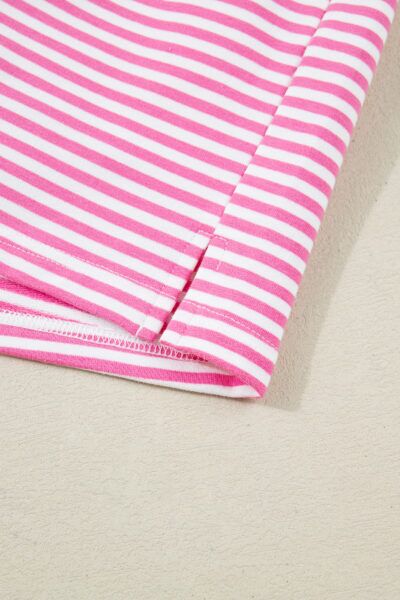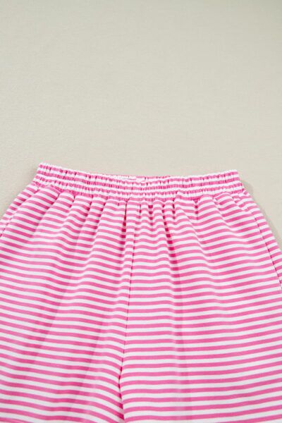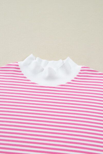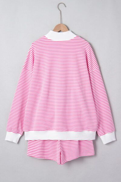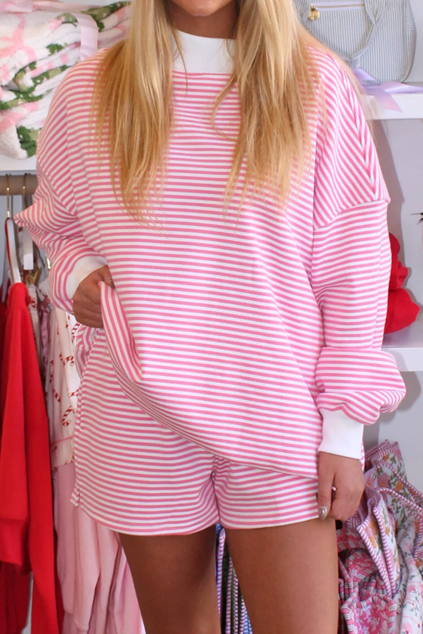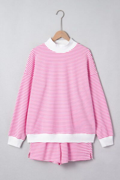 Pink Stripe Oversize Mock Neck Sweatshirt and Shorts Set
