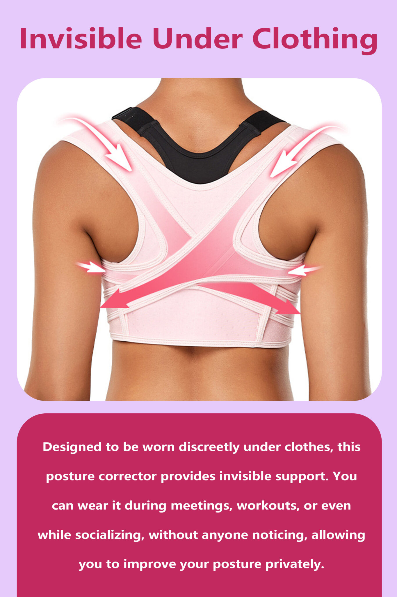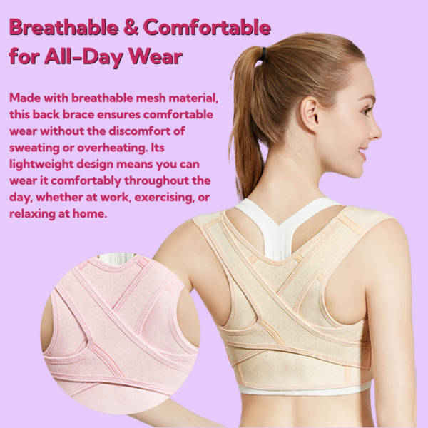 Innovative Double Y-Cross Structure ensures effective shoulder support and gradual correction of poor posture by gently stretching and aligning the spine. The adjustable design, with breathable mesh material, allows for all-day comfort, making it ideal for wearing under your clothes, whether you’re at work, home, or the gym. Perfect for women who are tired of dealing with poor posture, slouching, or back pain caused by sitting for long hours, this back brace is your solution for a healthier spine and improved confidence.