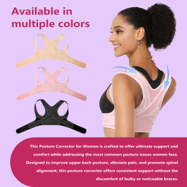 This Posture Corrector for Women is crafted to offer ultimate support and comfort while addressing the most common posture issues women face. Designed to improve upper back posture, alleviate pain, and promote spinal alignment, this posture corrector offers consistent support without the discomfort of bulky or noticeable braces.