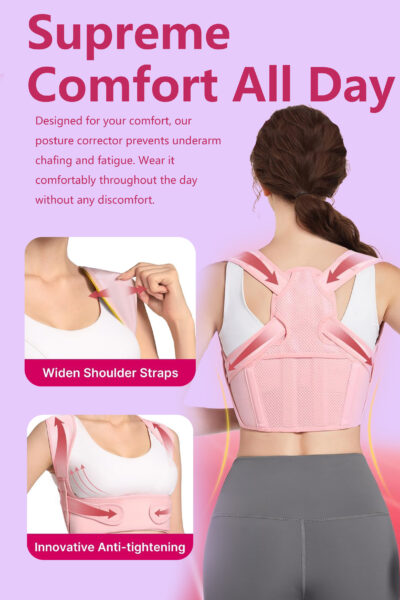 This Posture Corrector for Women is designed to improve posture, alleviate back pain, and provide spinal support in a discreet, comfortable, and adjustable form. Perfect for long hours at the desk, exercise, or post-injury recovery, it ensures you maintain proper posture throughout the day. Featuring adjustable straps and breathable fabric, it offers a custom fit that’s lightweight and comfortable, even during extended wear.