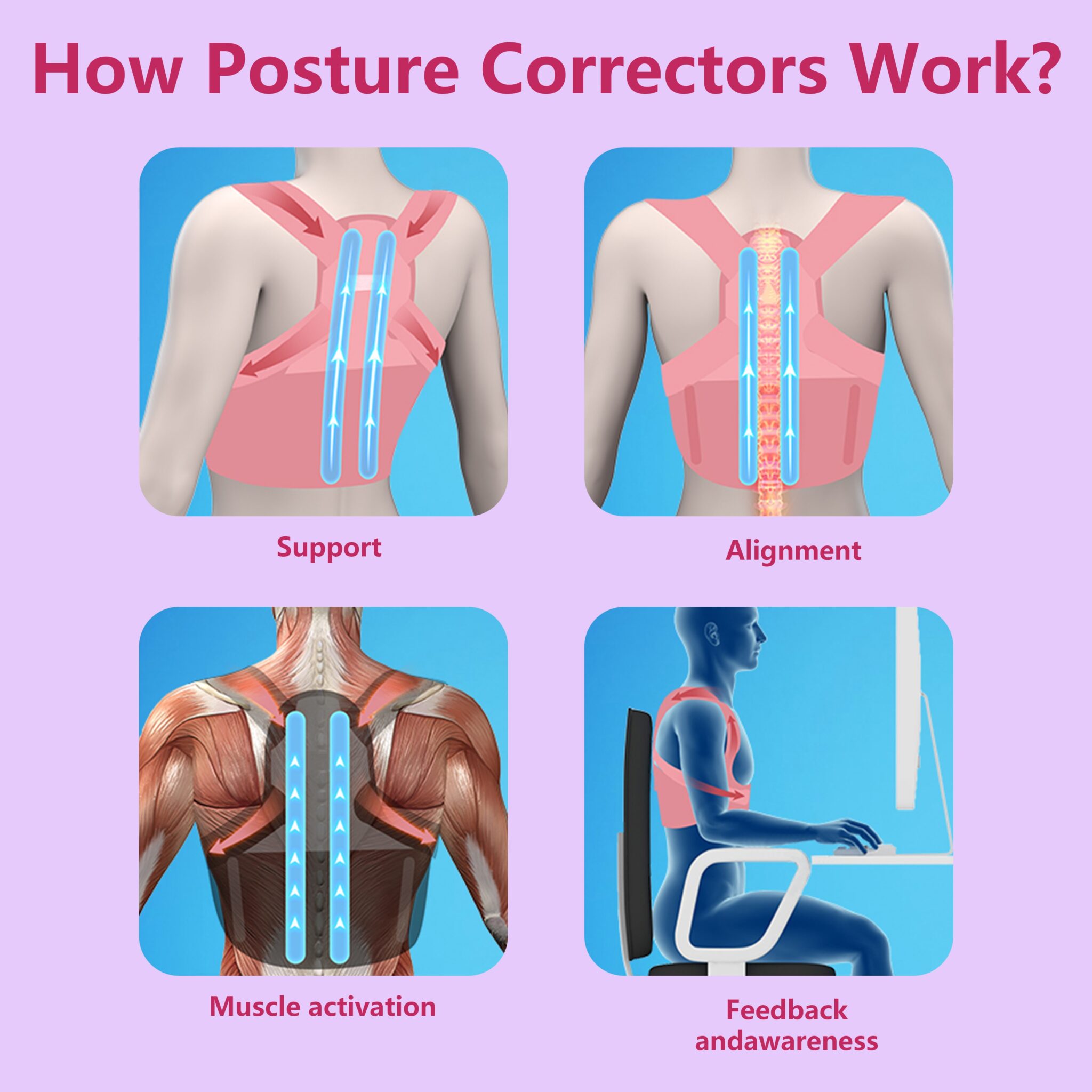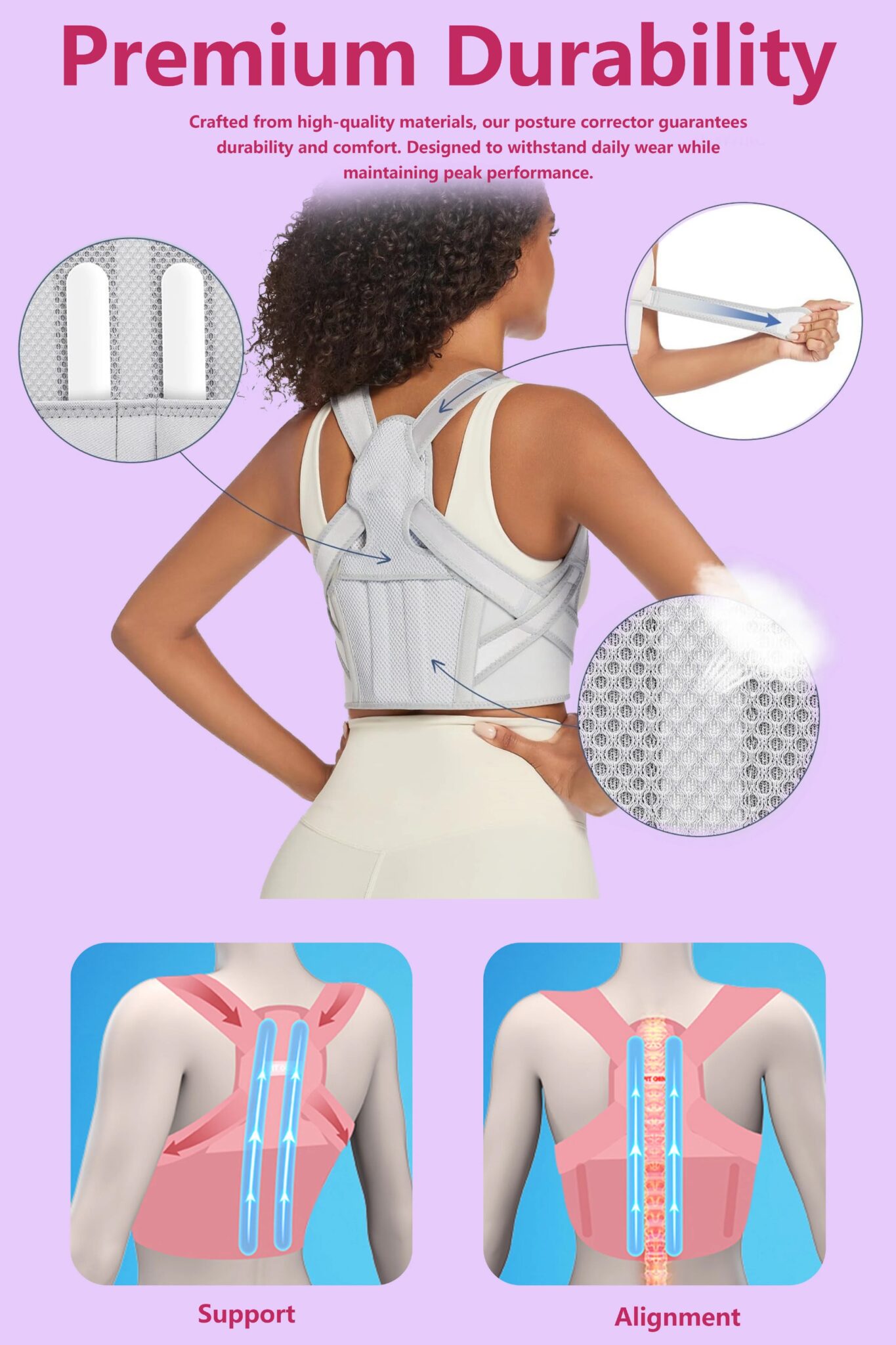 With a focus on comfort and practicality, this posture corrector is built to be worn under clothing, allowing for invisible wear at work, during social events, or when traveling. Whether you’re sitting at a desk, standing, or engaging in physical activities, it provides continuous support to help prevent slouching and improve your overall posture.