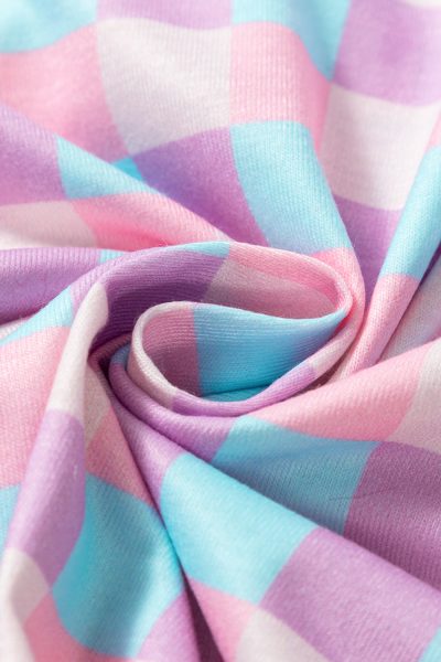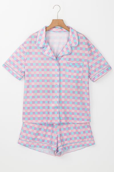 Purple Checkered Pattern Short Sleeve Pajamas Set