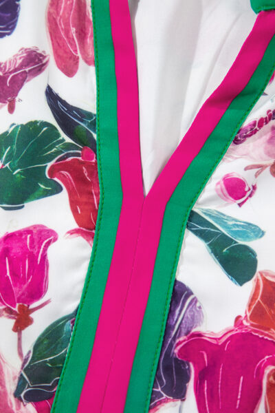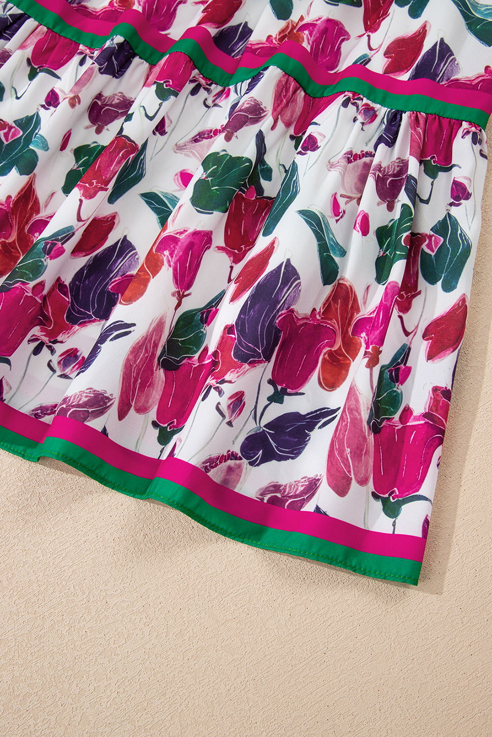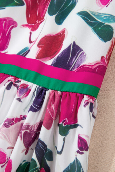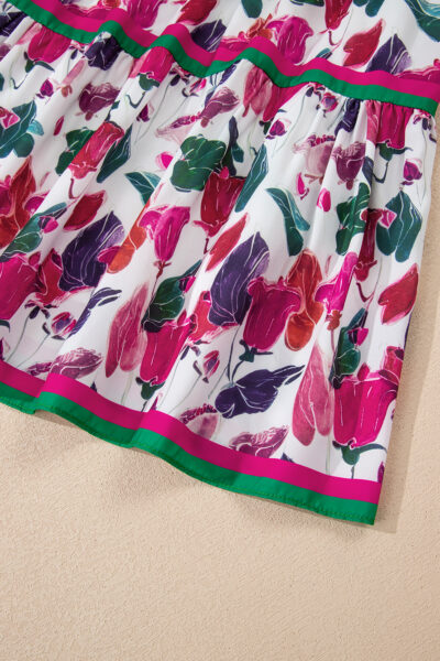 Purple Floral Print Contrast Striped Detail Long Sleeve Mini Dress