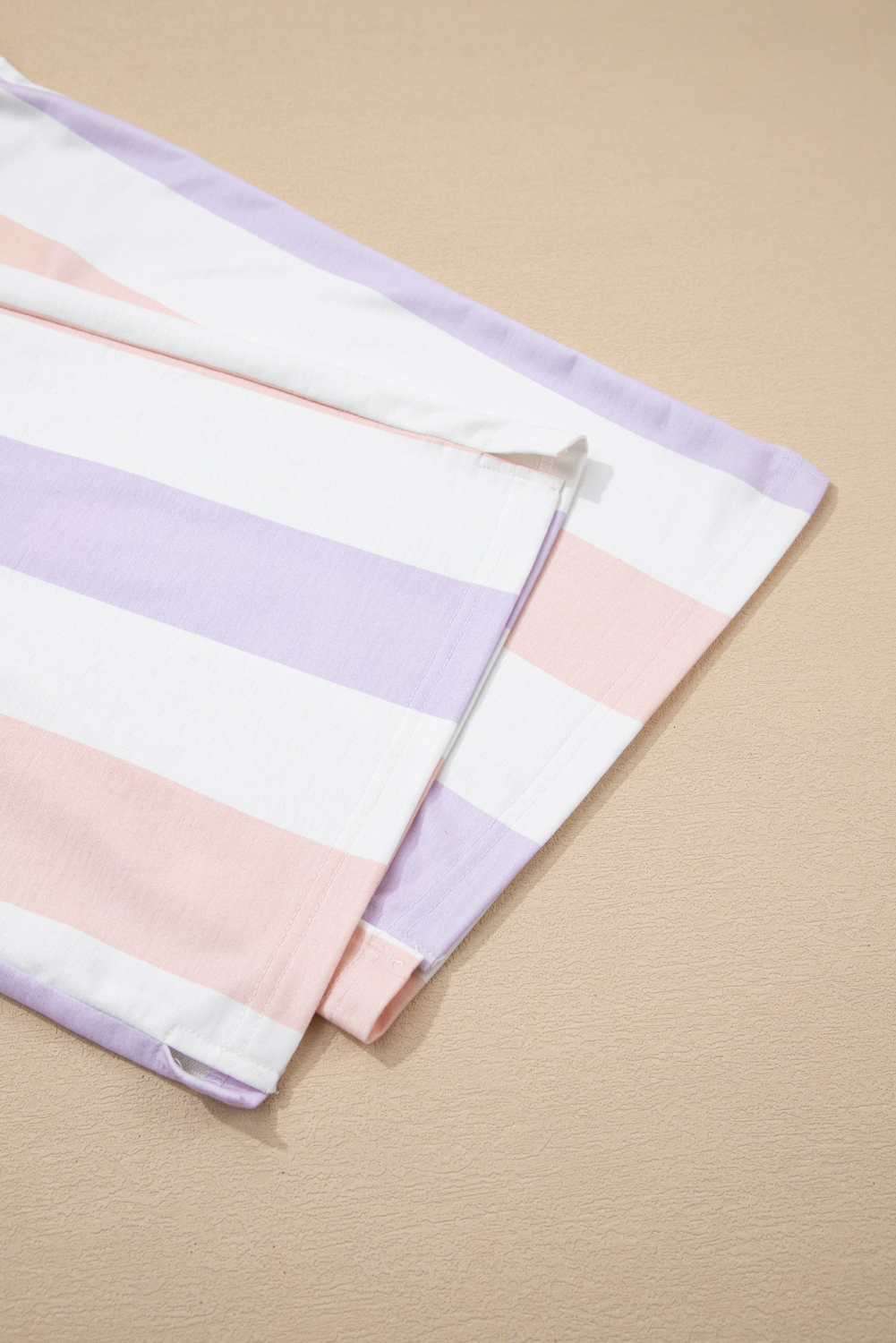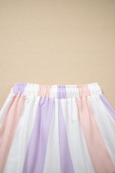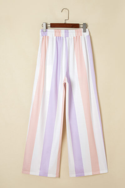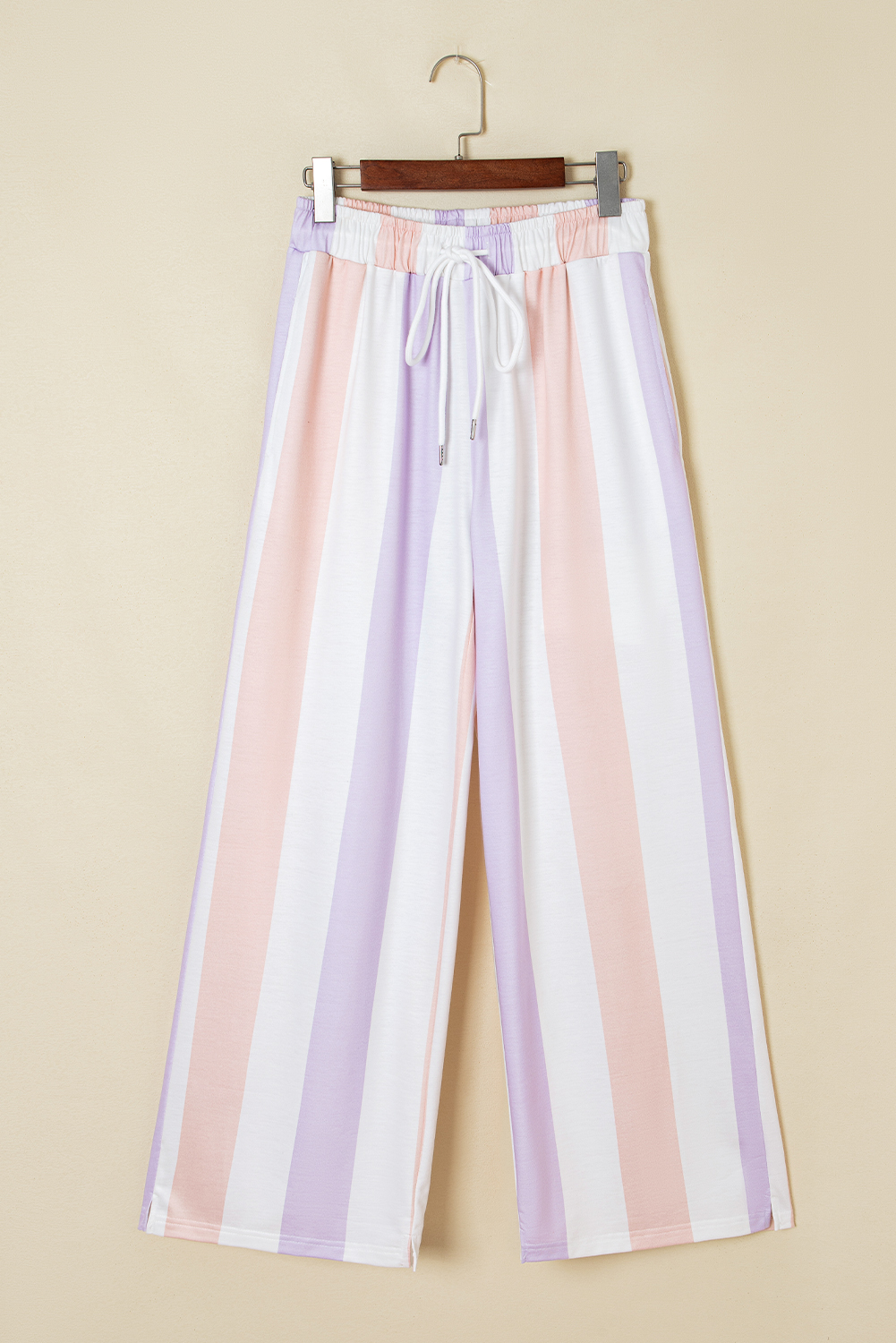 Purple Stripe Multicolored Print Drawstring Loose Pants with Side Pockets