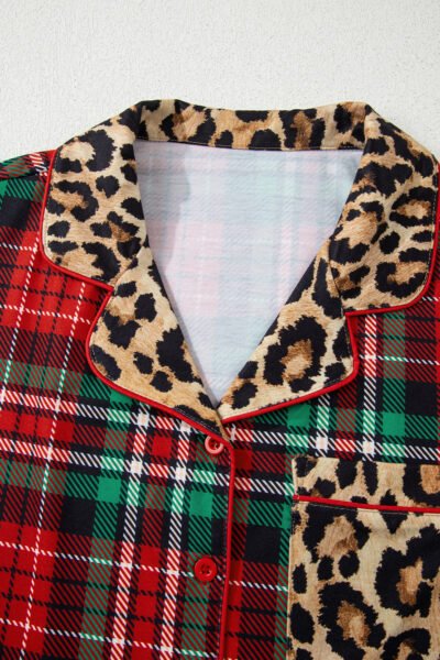 - Retro plaid and leopard patchwork create a bold, trendy 2pcs pajama set.